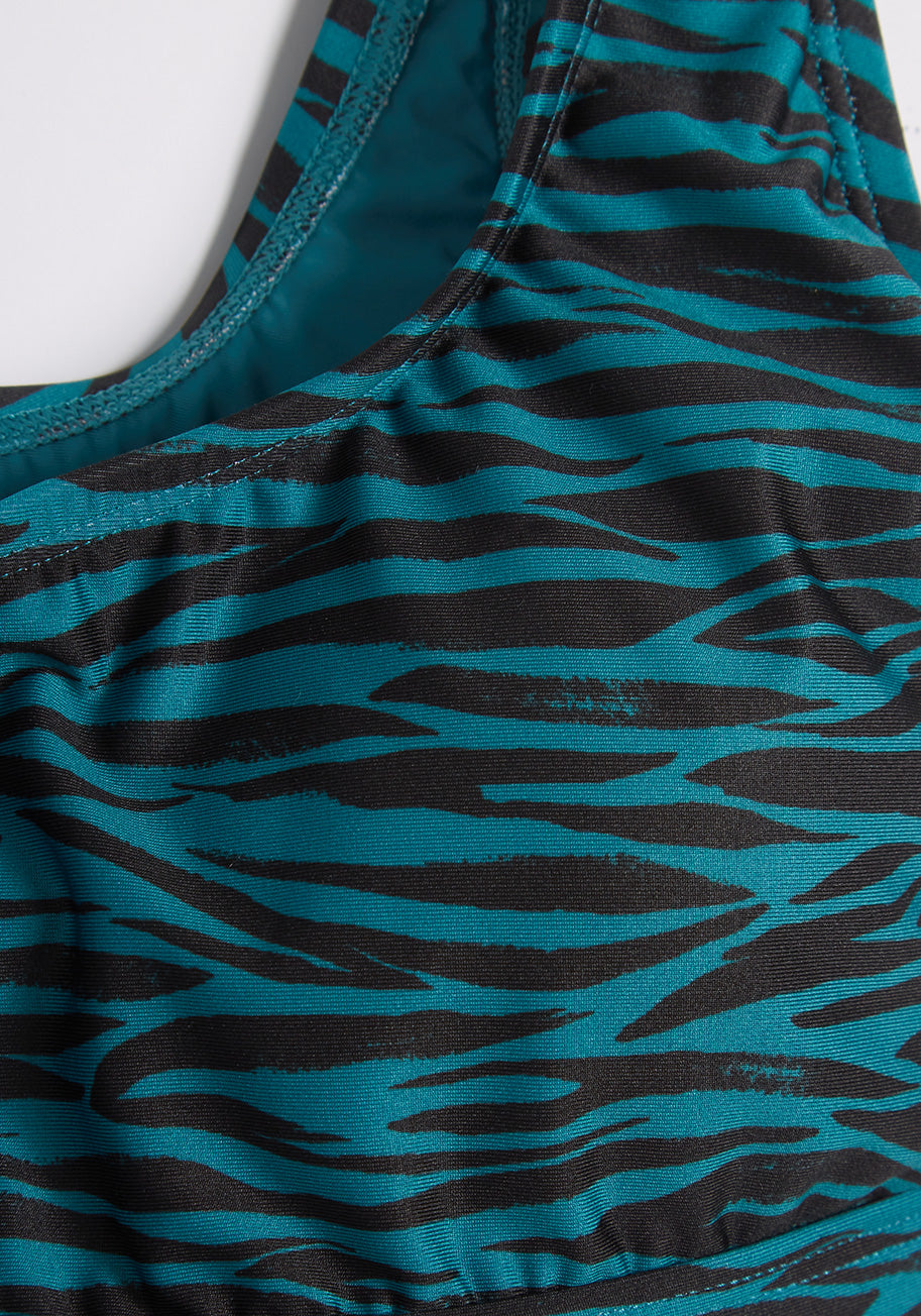 Dive deep into the wild with this teal green tank bikini top and your vivid vacation will never end. This cropped swimwear piece from our ModCloth namesake label is decked out in a micro black zebra stripe print with comfy padding at the bust and an adjustable back hook closure. An elasticized bottom band offers support, which we can all get behind. Get your splash on, girl!